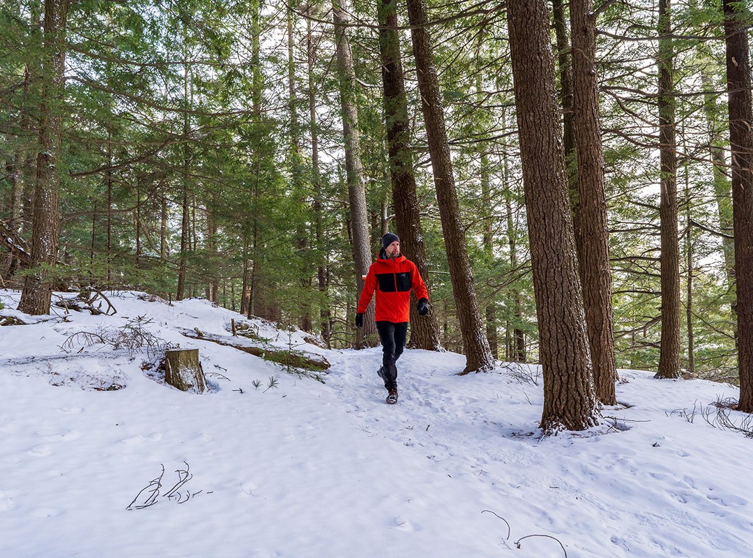 J’ai poursuivi jusqu’à la colline du lac Trousers afin d’admirer le point de vue au pic de la Loutre. Il s’agit d’aller-retour de près de 9 km et au dénivelé positif de plus de 300 m. Selon l’épaisseur de la neige, ce parcours peut prendre facilement plusieurs heures. Prévoyez un lunch en chemin et une source de réconfort de retour au gîte.