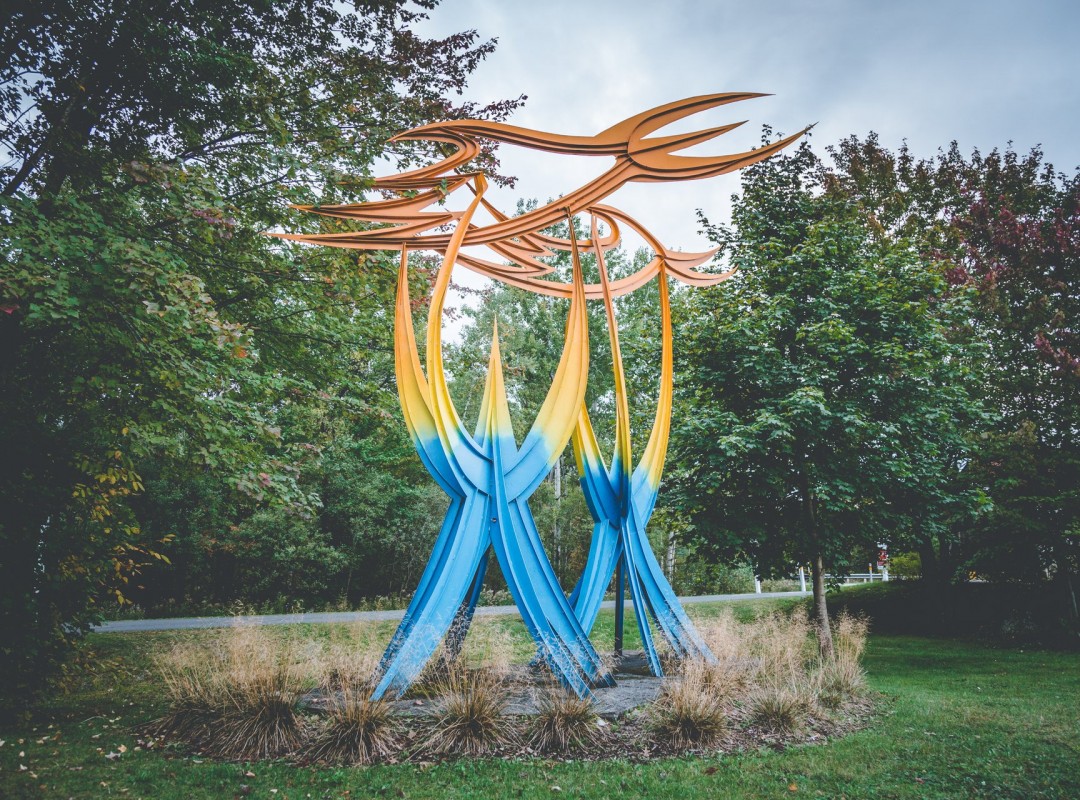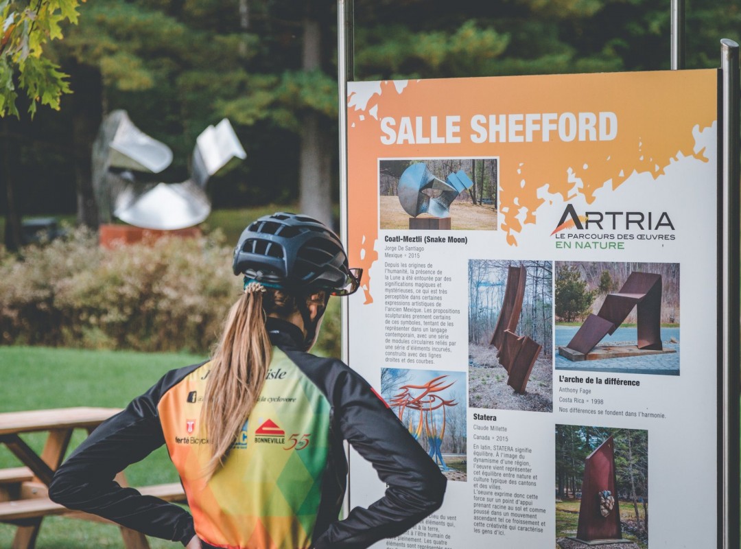 C’est par une journée automnale un peu nuageuse que nous sommes allés nous dégourdir les jambes sur la boucle culturelle Artria, une section cyclable de 56 km du réseau l’Estriade, qui permet d’admirer des dizaines de sculptures extérieures. Formant une boucle entre Granby et Waterloo, cet itinéraire traverse aussi le parc national de la Yamaska.