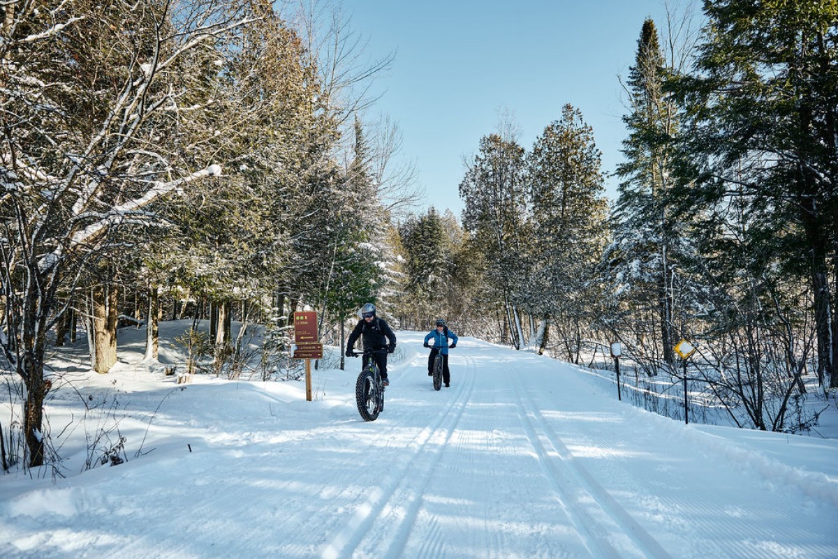 Férue de fatbike depuis trois ans, Denise Parsons adore pédaler sur la piste Le Grand-Tour qui encercle le réservoir Choinière, dans le parc national de la Yamaska. « C’est une très belle promenade sur un terrain peu accidenté. Plusieurs haltes invitent à la détente en chemin », dit cette cycliste des neiges de 50 ans. Pendant toute la saison blanche, la piste est damée par le personnel du parc, facilitant le déplacement. « J’aime que la piste soit large, car ça permet de rouler côte à côte en bonne compagnie. Le faible achalandage ajoute à l'atmosphère paisible des lieux », dit cette habituée de ce parc de 13,4 km2. Location de fatbikes sur place.