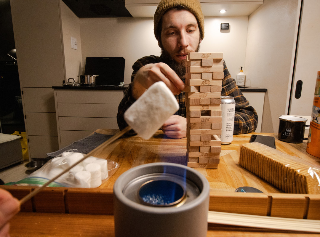 Bien sûr, on termine ce repas par une touche sucrée! Un crémeux au citron pour les plus sérieux et quelques S’Mores à griller pour les grands enfants… On jase, on joue au Jenga, on rajoute quelques bûches dans le feu et surtout, on oublie le temps qui passe.