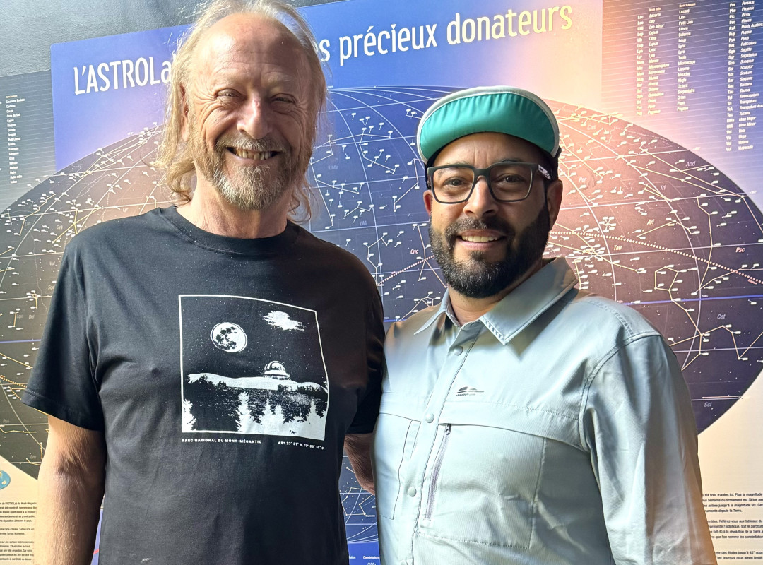 Les Cantons-de-l'Est et particulièrement la région de Mégantic m’ont toujours fasciné, mais ma visite récente dans le cadre du tournage de mon émission Alexis le Randonneur a dépassé toutes mes attentes. Dès mon arrivée, un rendez-vous marquant m’attendait : une rencontre avec Bernard Malenfant, fondateur de l'Astrolab du Mont-Mégantic. Bernard est un homme d’une richesse incroyable, non seulement par ses connaissances scientifiques mais aussi par son dévouement pour la protection du territoire et surtout du ciel étoilé. À peine assis avec lui, j'étais déjà captivé, suspendu à ses lèvres. Il a ce talent rare de raconter des histoires qui semblaient faire revivre chaque moment de sa vie.