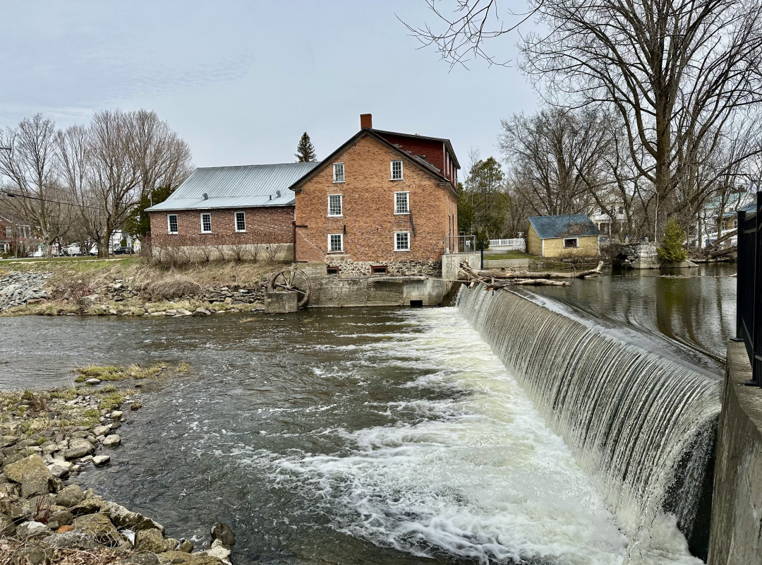Sur recommandation d’un commerçant de Dunham, nous avons poursuivi vers le Café Blinn à Stanbridge-East. Nous y avons bu un café sur la jolie terrasse avec vue sur la rivière. À quelques pas de là, nous avons découvert par surprise un barrage, où l’eau déferlait avec force en cette belle journée de printemps.