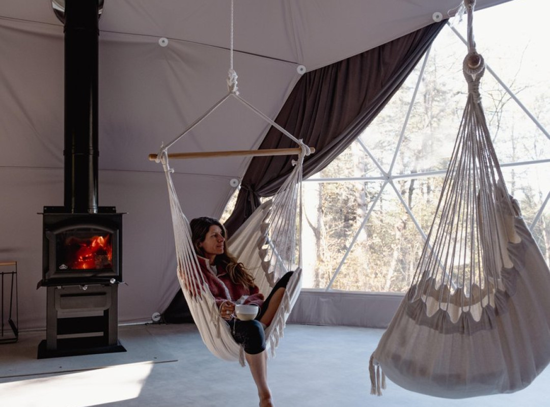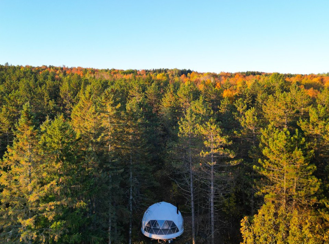 À quelques pas des dômes et yourtes se trouve la Maison Forêt, un pavillon commun où on cuisine, on relaxe, et on échange autour du feu. L’expérience se prolonge avec un espace thermal en nature, comprenant sauna sec et grand spa. C’est assurément le genre d’endroit où aller si on veut recharger ses batteries sans trop se casser la tête!