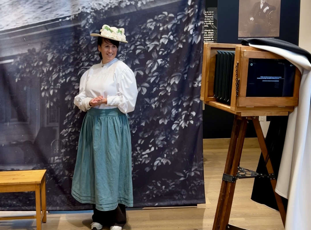 De retour vers Magog, j’ai visité la Maison Merry, la plus vieille maison de la ville, datant de 1821. Située au coin de la rue Merry et de la rue Principale, je suis passé au moins 1000 fois devant sans jamais la remarquer et c’est grâce aux petits panneaux ronds du Chemin des Cantons que je me suis décidée à y entrer! Aujourd’hui transformée en musée, elle raconte l’histoire de la région d’une façon vivante et attachante. Et oui… je me suis même laissée tenter par une photo avec des vêtements d’époque. Un beau retour dans le passé que je n’aurais pas pris le temps de découvrir si ce n’était des petits panneaux ronds!