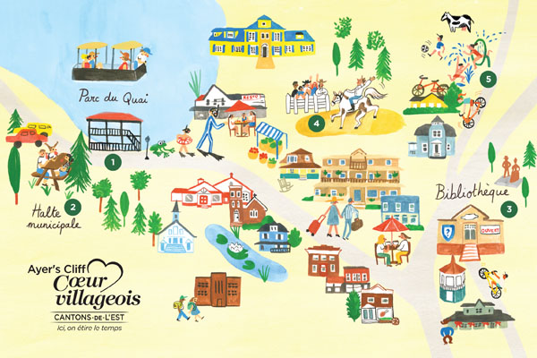 Cette tradition d'hospitalité se poursuit encore aujourd'hui grâce aux lieux d'hébergement touristique aux abords du lac. Étape du Chemin des Cantons, Ayer's Cliff a conservé son lustre anglo-saxon grâce à ses résidences d'antan, à son charmant kiosque de musique et au site de l'exposition où se tient un marché public tous les samedis d'été.