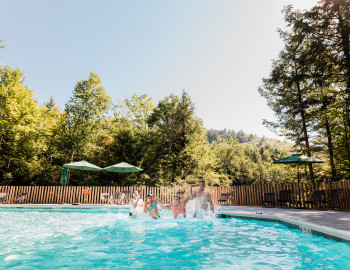 Sur place, profitez de lits confortables, d’un espace pour cuisiner, d’une terrasse avec BBQ et d’un foyer extérieur idéal pour terminer la journée autour du feu sous les étoiles. Entre deux moments de détente, partez à l’aventure sur les sentiers de randonnée et de vélo accessibles directement du site, relaxez vous à la piscine chauffée ou faites une pause au café-bistro.