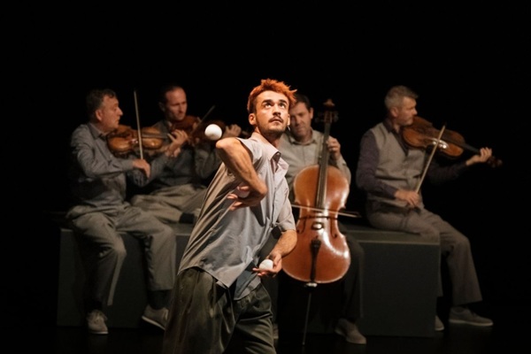 Glissant des notes d’Henry Purcell à celles de Marc Mellits, dix jongleuses, jongleurs et quatre musiciens façonnent sur scène une petite utopie, où le collectif se forme depuis les différences et les singularités de chacun.