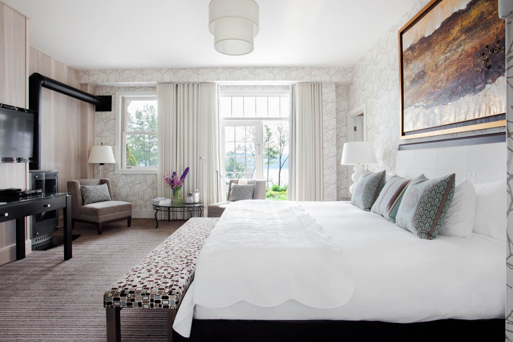 Séjour Relais & Châteaux - Profitez d'une élégance simple dans nos chambres magnifiquement conçues qui donnent sur le lac et les jardins. Les chambres, les suites et les pavillons allient à la fois goût historique et confort moderne. Cuisine Cinq Diamants - Savourez les produits de saison dans notre restaurant et notre bistro. Notre équipe de cuisine prépare des plats riches en saveurs à base d'ingrédients frais et locaux, accompagnés d'une vaste carte de boissons. Relaxation Spa - Les forêts de bouleaux et le lac scintillant offrent un magnifique cadre propice à la détente. Notre prestation phare, le Spa Manoir Hovey, inclut un circuit thermal, une piscine en bord de lac et des soins axés sur le bien-être.