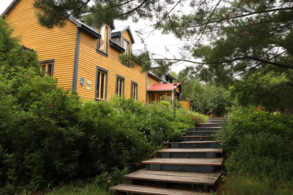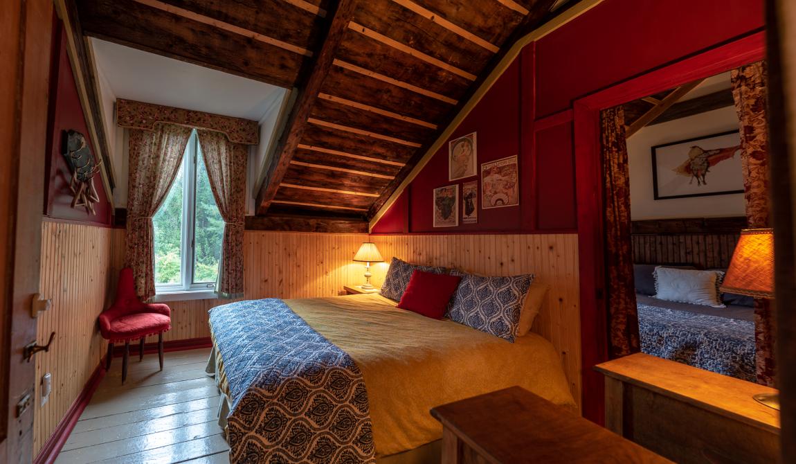 Construite à partir de bâtiments anciens des 18ᵉ et 19ᵉ siècles en pièce sur pièce, l’auberge met à votre disposition cinq chambres, pouvant accueillir jusqu’à 14 personnes, un grand salon avec foyer et piano, ainsi qu’une salle à manger de 55 places. L'environnement forestier de notre domaine de cinq acres vous charmera par sa quiétude et son nouvel espace sauna-spa. Bain chaud et bain froid, sauna sec et yourte de repos, vous attendent pour une détente complète. Dans nos jardins sont cultivées des herbes aromatiques et des fleurs comestibles qui servent à agrémenter en couleurs et en goût la cuisine de l’auberge. Déjeuners copieux inclus avec l'hébergement, et soupers table d'hôte (apportez votre vin) disponibles le soir.