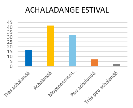 La saison semble avoir répondu aux attentes d’une majorité des entreprises touristiques et les résultats concernant l'achalandage confirment cette tendance positive. Le sondage révèle en effet que près de 60 % des répondants considèrent leur achalandage estival comme « élevé » ou « très élevé ». Bien que 30 % des répondants aient signalé un achalandage moyen, il est encourageant de constater que seulement 9 % des entreprises ont rapporté un achalandage faible ou très faible.