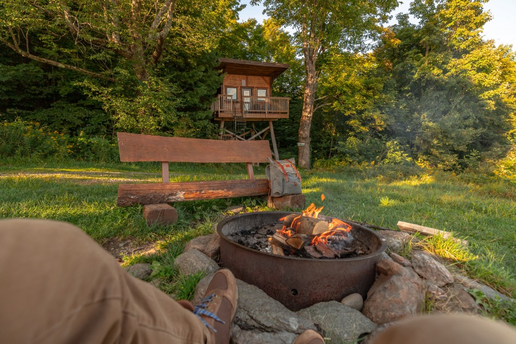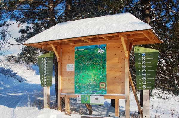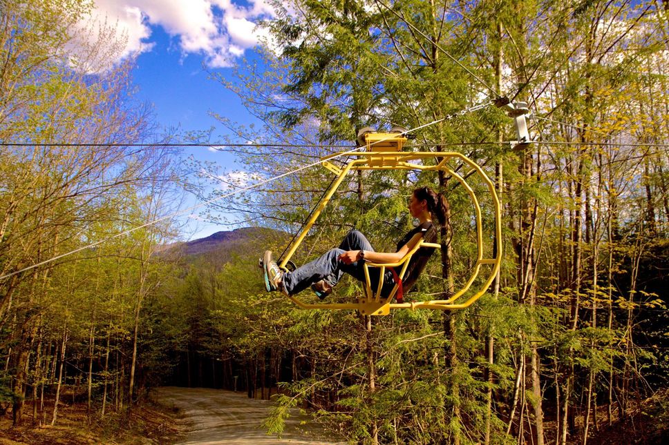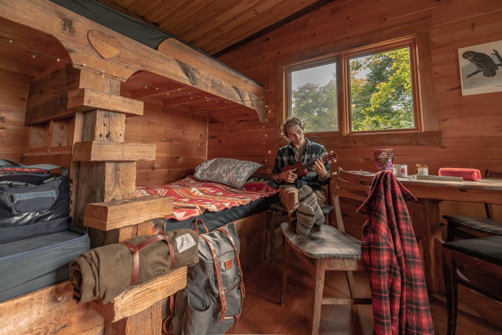 Le choix d'hébergement varie entre le camping toute saison sur les 32 sites isolés, les refuges rustiques perchés dans les arbres ou sur falaise, ainsi que les suites de deux chambres avec cuisinette et foyer. Quatorze km de sentiers privés vous donnent un accès direct aux sentiers de l'Estrie et aux 65 km de sentiers du Parc d'environnement naturel de Sutton. La terrasse licenciée surplombe la vallée de la rivière Missisquoi avec vue sur les Montagnes Vertes. Les autres activités incluent le kayak, la planche à pagaie et le VéloVolant, le premier vélo sur câble aérien au Canada. En hiver, la raquette et le ski nordique. Les centres de ski de Sutton, Owl's Head et Jay Peak sont à seulement 20 minutes en voiture. Les chiens sont admis.