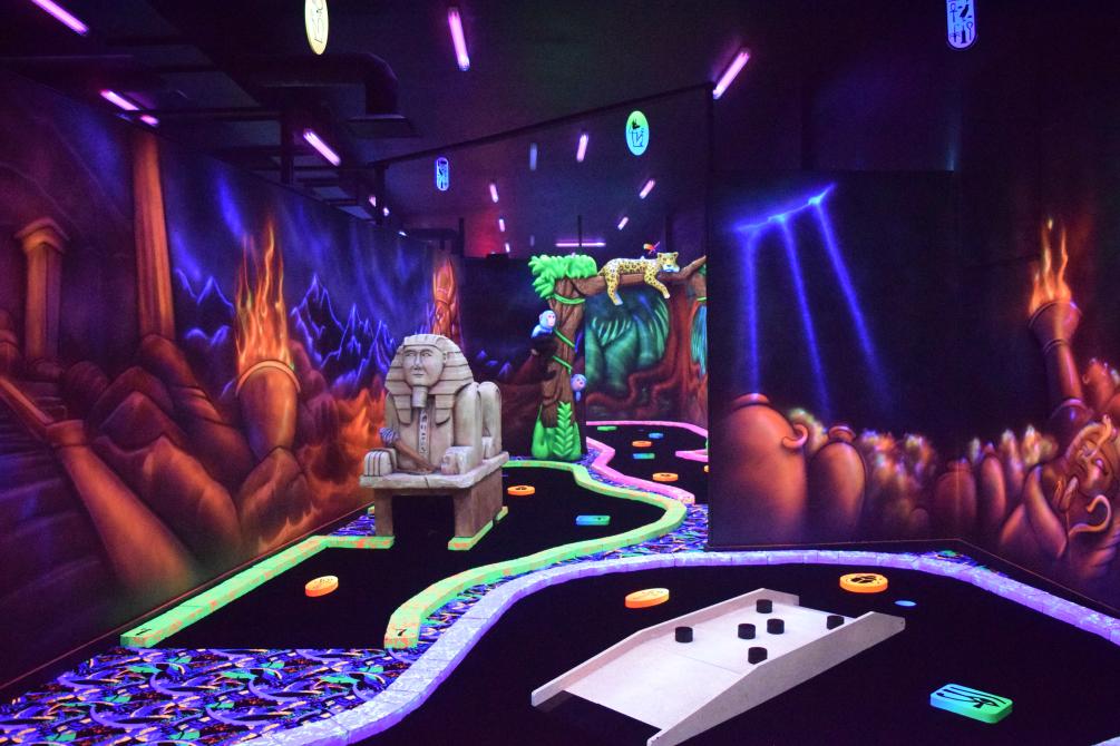 Jeu de Poursuite Laser : imaginez un jeu rempli d'action, d'effets visuels et d'adrénaline! La Poursuite Laser combine le jeu de cache-cache et les jeux virtuels pour en faire une activité réelle et technologiquement avancée. Le jeu se déroule dans un environnement spécial rempli d'obstacles, de « black lights », de brume et de musique entraînante. Aventure LaserPutt : LaserPutt vous en mettra plein la vue. Familles et amis, oubliez la réalité en jouant une joute de minigolf dans cet environnement où les couleurs et les décors sont à l'honneur. C'est une expérience unique et divertissante dans un univers illuminé à éclairage de type « black light » où le décor, la balle et même votre bâton semble émerger de la noirceur.