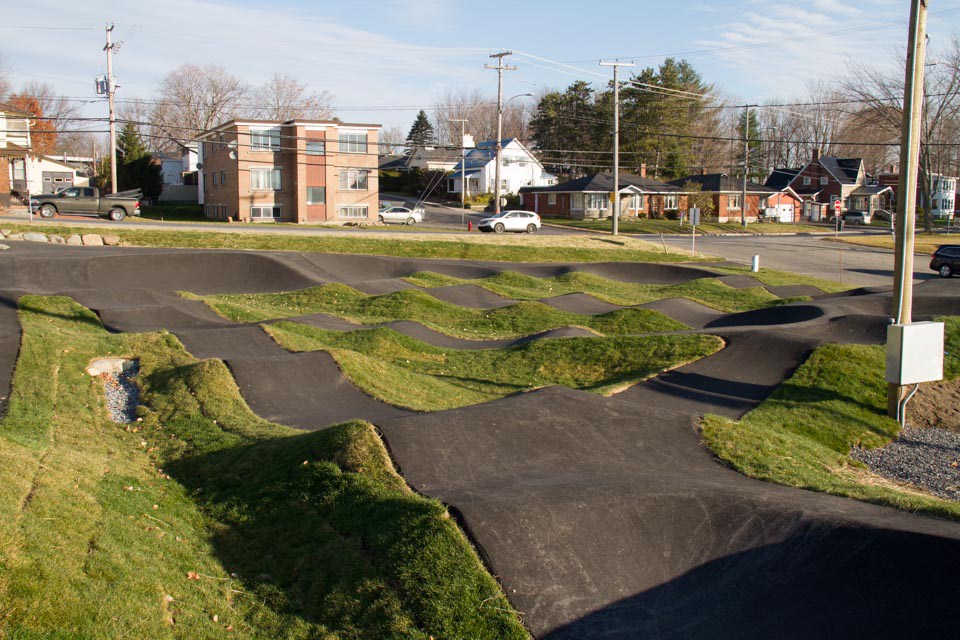 La première section (155 m2) est une bretelle destinée aux débutants et aux enfants (4-7 ans). Elle sera séparée physiquement de la piste actuelle pour plus de sécurité. La deuxième section est destinée aux experts (350 m2). Elle est construite en parallèle au parcours phase 1. Nous avions donc un parcours initial de 690 m2 et maintenant, un parcours de 1 195 m2 . Nous avons la plus grande piste asphaltée de ce type au Québec!!!