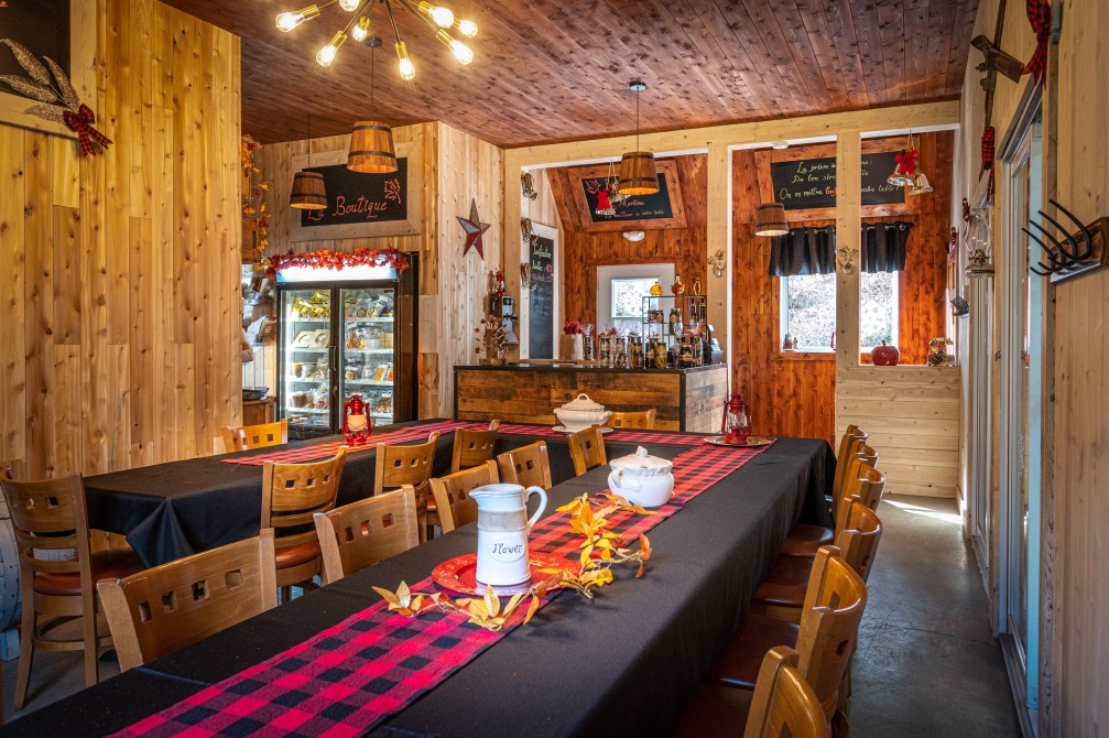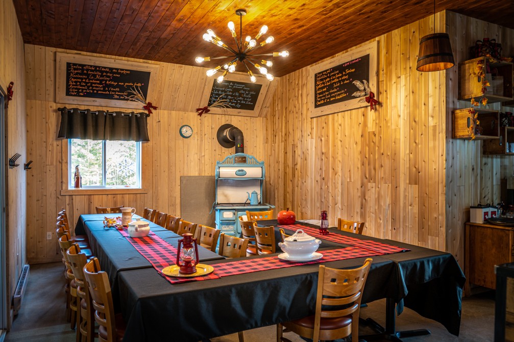 Les produits La Martine sont faits maison par Martine elle-même et fabriqués dans notre cabane à sucre : conserves, vinaigrettes, gelées, tartes, marinades au goût unique, comme seules nos grands-mères savaient les faire et qui nous rappellent de délicieux souvenirs... sans oublier tous les sous-produits de l’érable et les mets surgelées. Martine accorde la plus haute importance au choix des aliments qu'elle utilise et qui proviennent de producteurs locaux. En saison estivale, l’évaporateur sert de présentoir aux produits dans la boutique, une façon de vous rappeler que du sirop d’érable se retrouve dans tous les plats! Nous avons une petite salle à manger pouvant accueillir 24 personnes.