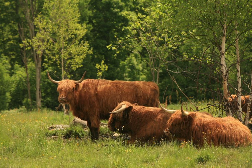 Maigre, bien persillée, savoureuse. « Du boeuf au goût d’antan ». La viande Highland a un faible taux de gras et de cholestérol, tout en ayant un fort pourcentage de protéines et de fer comparativement à d’autres races de bovins. Les Highland sont élevés avec de l’herbe et du foin. Les bouvillons sont élevés de façon à ce que leur rythme de croissance soit lent et ce, dans un environnement calme, sans hormones, antibiotiques ou additifs alimentaires dispendieux. Ainsi, ils obtiennent de la viande bien persillée et d’une riche saveur. La viande provenant de sujets élevés à l’herbe contient des niveaux de vitamines A et E plus élevés et une plus grande proportion d’acides gras de type oméga 3 qui sont plus bénéfiques pour la santé.