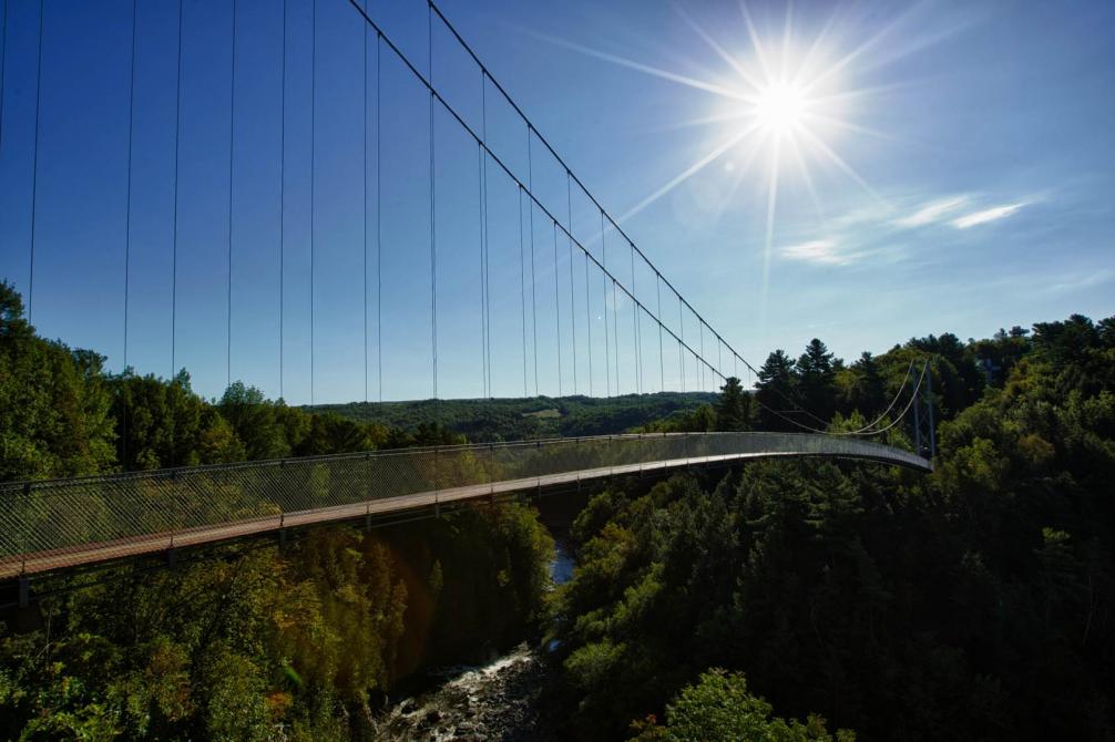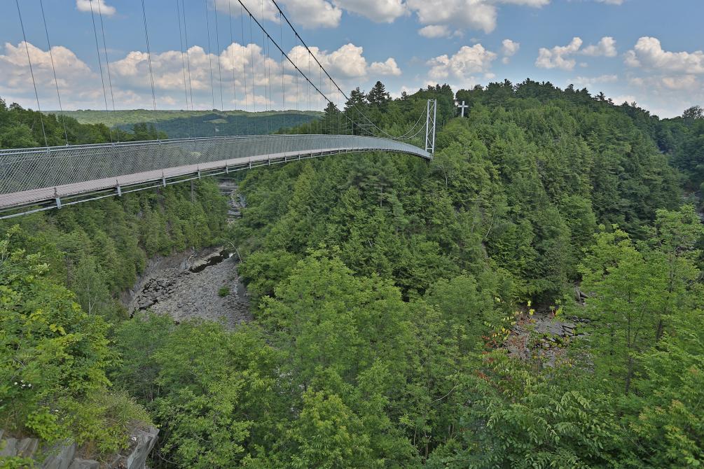 Ce sentier offre la possibilité d’observer le superbe phénomène naturel qui a formé la gorge de Coaticook. Le sentier permet d’enjamber la rivière Coaticook et de traverser le plus long PONT SUSPENDU pour piétons en Amérique du Nord. Plusieurs points d’intérêt dont une tour d’observation, un barrage, une centrale hydroélectrique encore en fonction ainsi qu’une grotte.