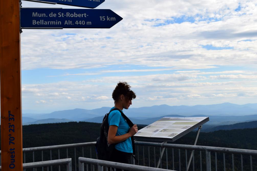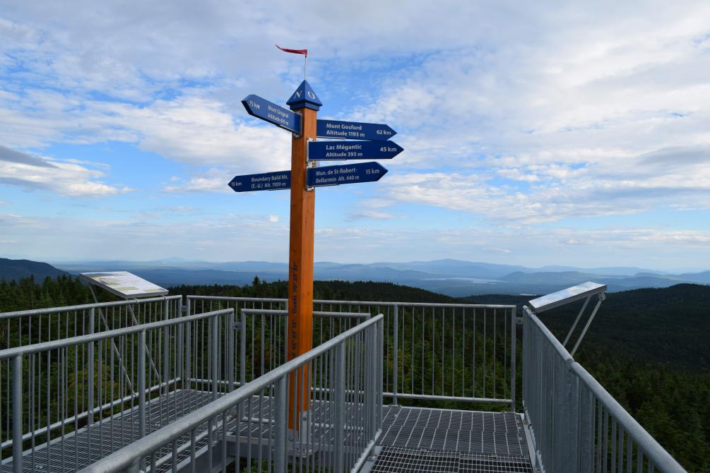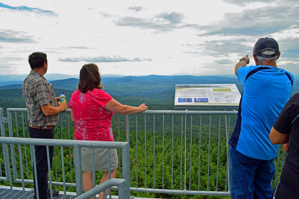 Vue panoramique des États-Unis et du Canada. Observation des oiseaux : urubu, aigle royal, grive de Bicknell. Aménagement d’un escalier en roche avec rampe. De plus on peut y observer un nid d’aigle ainsi que différente vue.