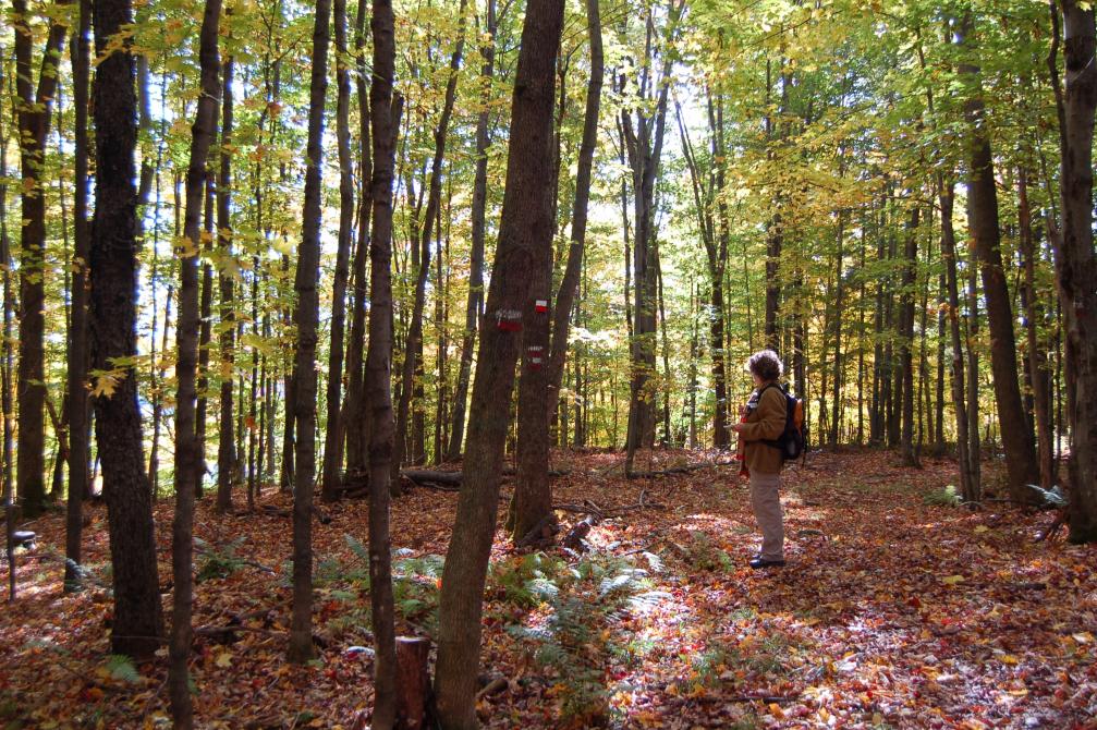 Randonnée facile, mais très agréable. Le sentier passe par la croix qui surplombe Kingsbury et revient en suivant la rivière au Saumon. Idéal pour la famille. Du stationnement, traverser la rivière sur le barrage (pont sécuritaire). Suivre le sentier principal (rouge) allant vers Richmond (nord) sur 1,2 km. Revenir par le sentier alternatif.