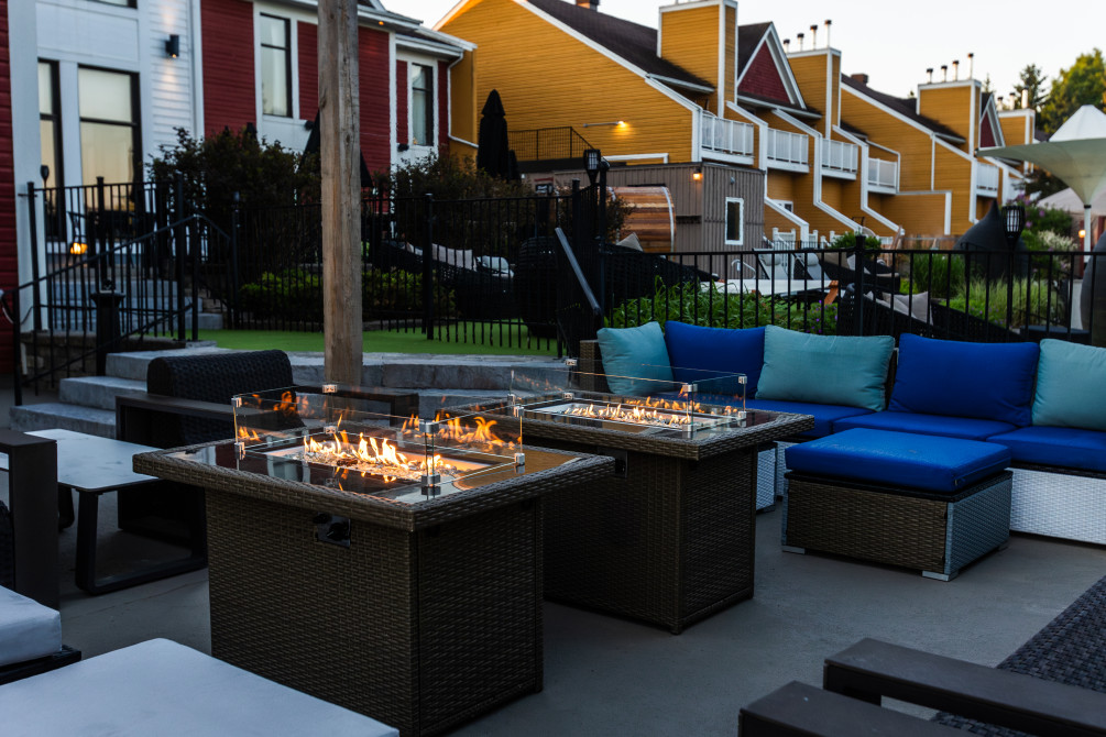Expérience festive et dynamique grâce à l’accès au spa (bains scandinaves, saunas, bain d’eau froide, piscines), foyers extérieurs, soirées chansonnier, terrain de tennis, volley-ball, shuffleboard et jeux de fer, terrain de pétanque, jeux de poche et jenga géant, table de billard extérieure, location de bicyclette et aux founisseurs externes pour des olympiades, création de toiles collectives ou dégustation de vins.