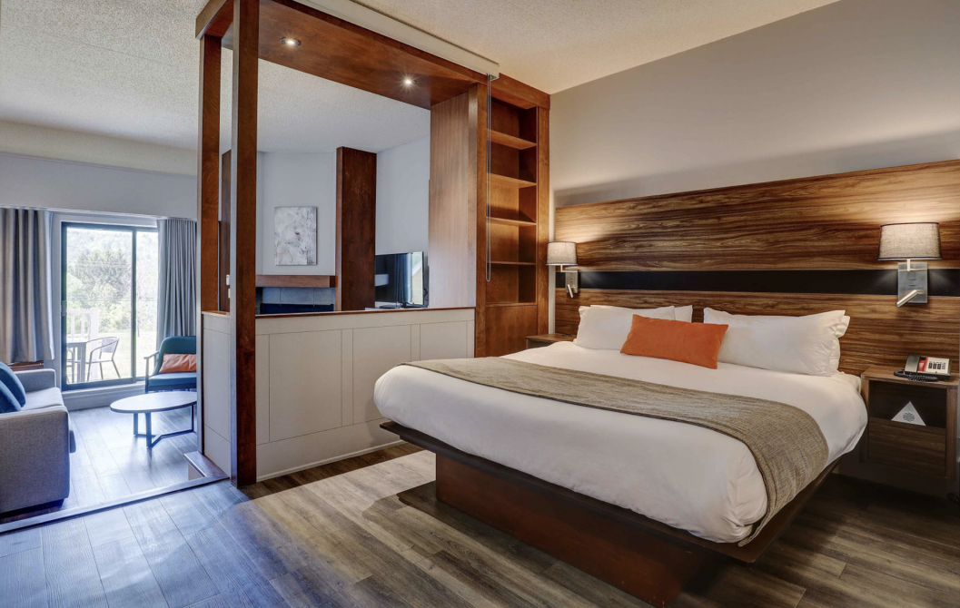 Situé au cœur des Cantons-de-l’Est, l’Estrimont est une destination de choix pour vos réunions, congrès et événements. Des espaces de réunion rénovés avec une fenestration omniprésente et du mobilier confortable vous y attendent. Offrez des suites lit King à vos participants, en plus d’un accès illimité aux bains scandinaves, piscines chauffées, saunas (finlandais et infra-rouge), douche nordique, bain froid et yourte extérieure.