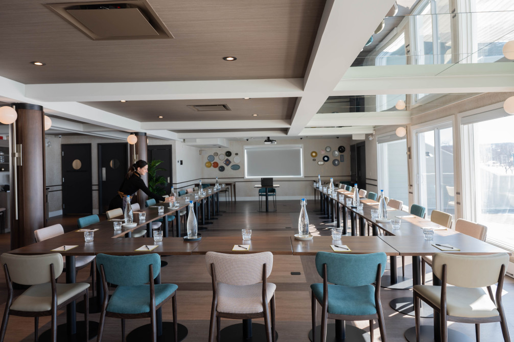 Notre salle de réunion vous promet l’une de plus belles vues de la région : le bleu de l’eau, les voiliers, les montagnes… Prenez votre pause-café ou terminez votre journée par un cocktail sur votre terrasse privée face au lac.