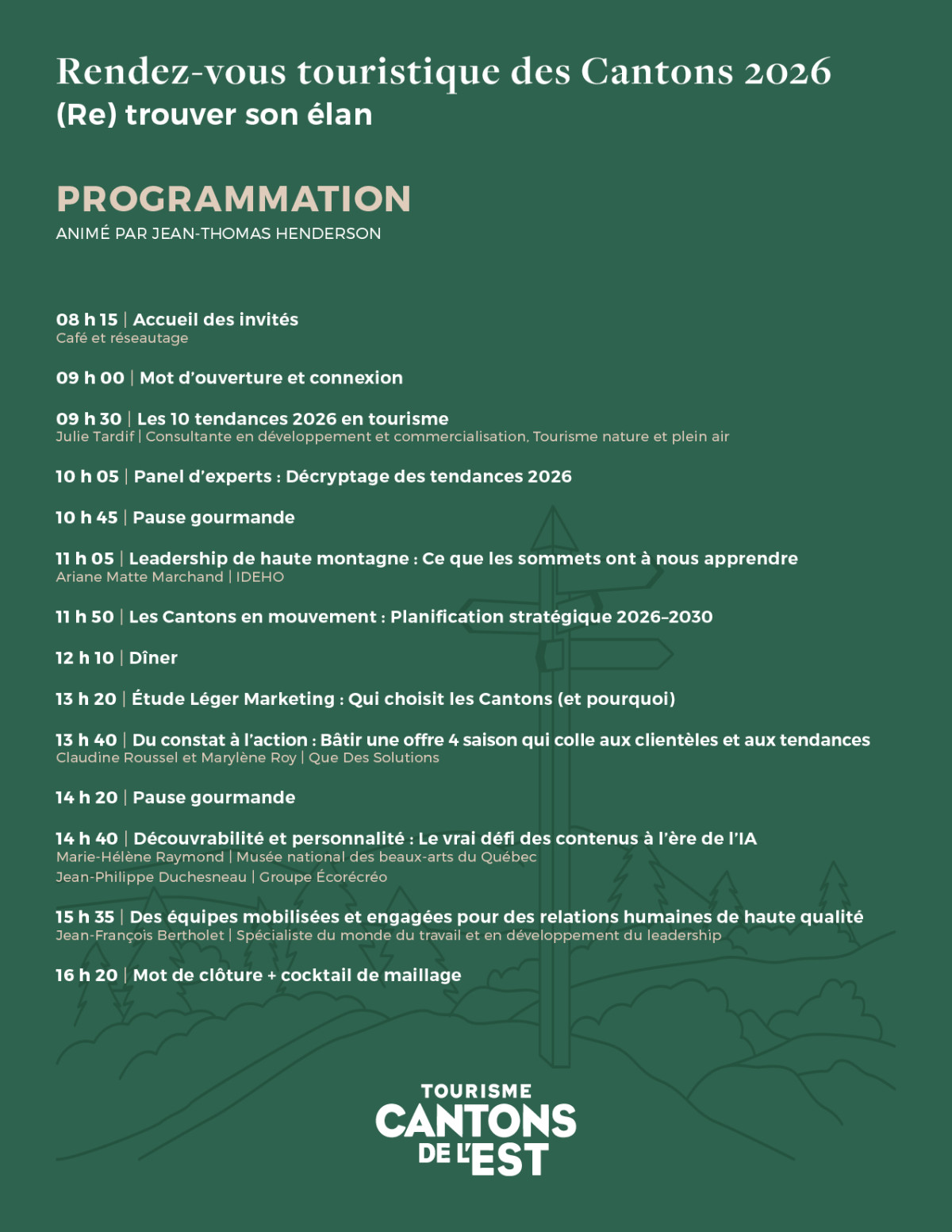 Le Rendez-vous touristique des Cantons 2026 – (Re)trouver son élan est une journée qui fait du bien, pensée pour prendre de la hauteur sur ce qui bouge vite dans l’industrie, se reconnecter à l’essentiel, puis repartir avec des idées claires, des outils et des pistes d'actions concrètes à ramener sur le terrain.